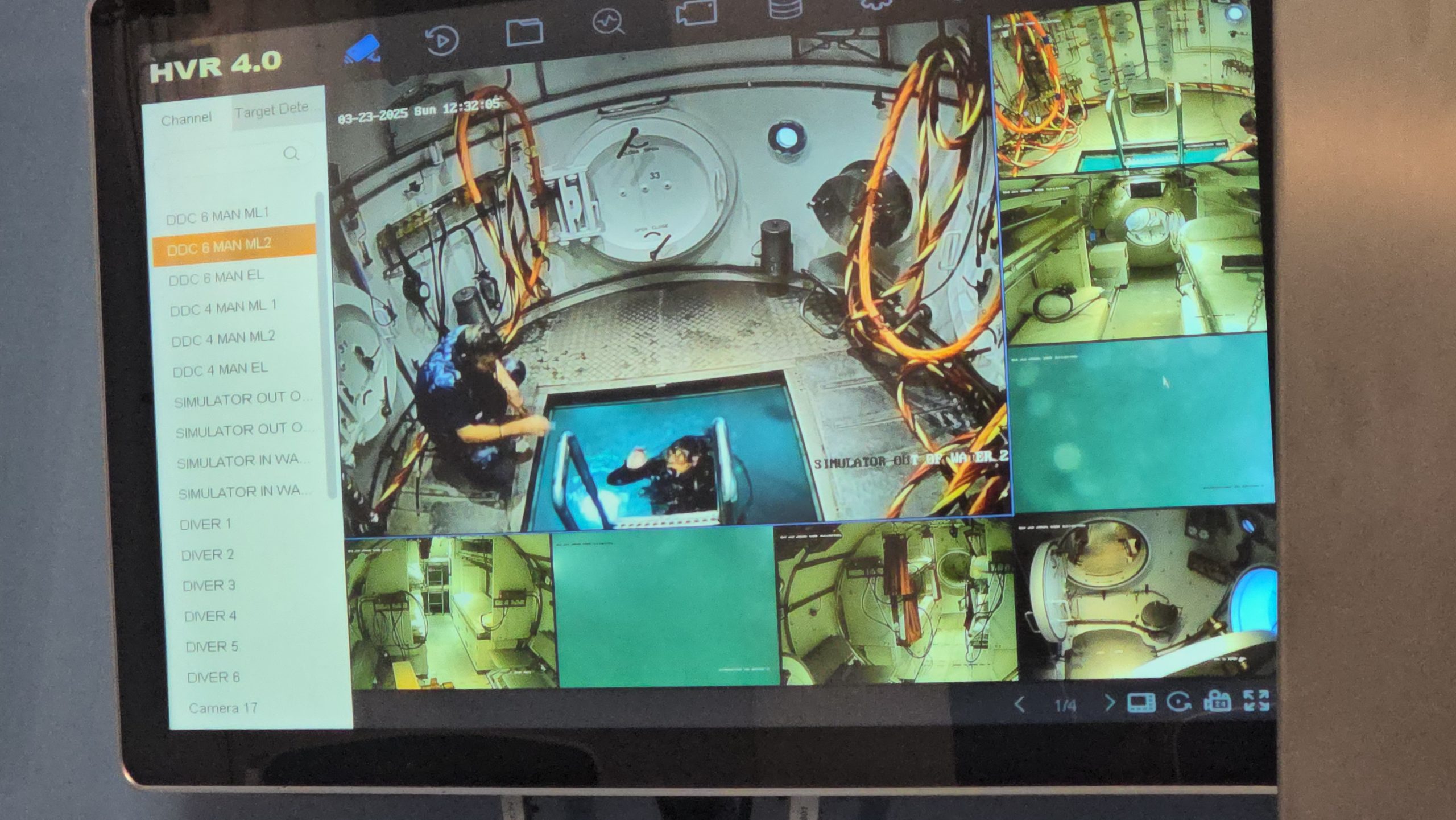 În tot acest timp, viitorii scafandri sunt monitorizați permanent, pentru bunul mers al lucrurilor. „Datorită faptului că sistemul este foarte automatizat, echipa de la suprafață poate monitoriza cu ușurință tot ce se întâmplă în barocamere, atât în timpul scufundărilor, cât și pe durata decompresiei. Datorită faptului că sistemul este foarte automatizat, echipa de la suprafață poate monitoriza cu ușurință tot ce se întâmplă în barocamere, atât în timpul scufundărilor, cât și pe durata decompresiei“, a continuat acesta.