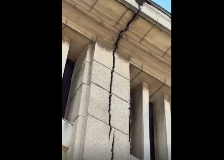 Într-un video postat pe pagina sa de Facebook, Horia Constantinescu arată cum un perete al acestei clădiri emblematice din Constanța este crăpat de sus până jos, iar crăpătura respectivă nu pare a fi una recentă.