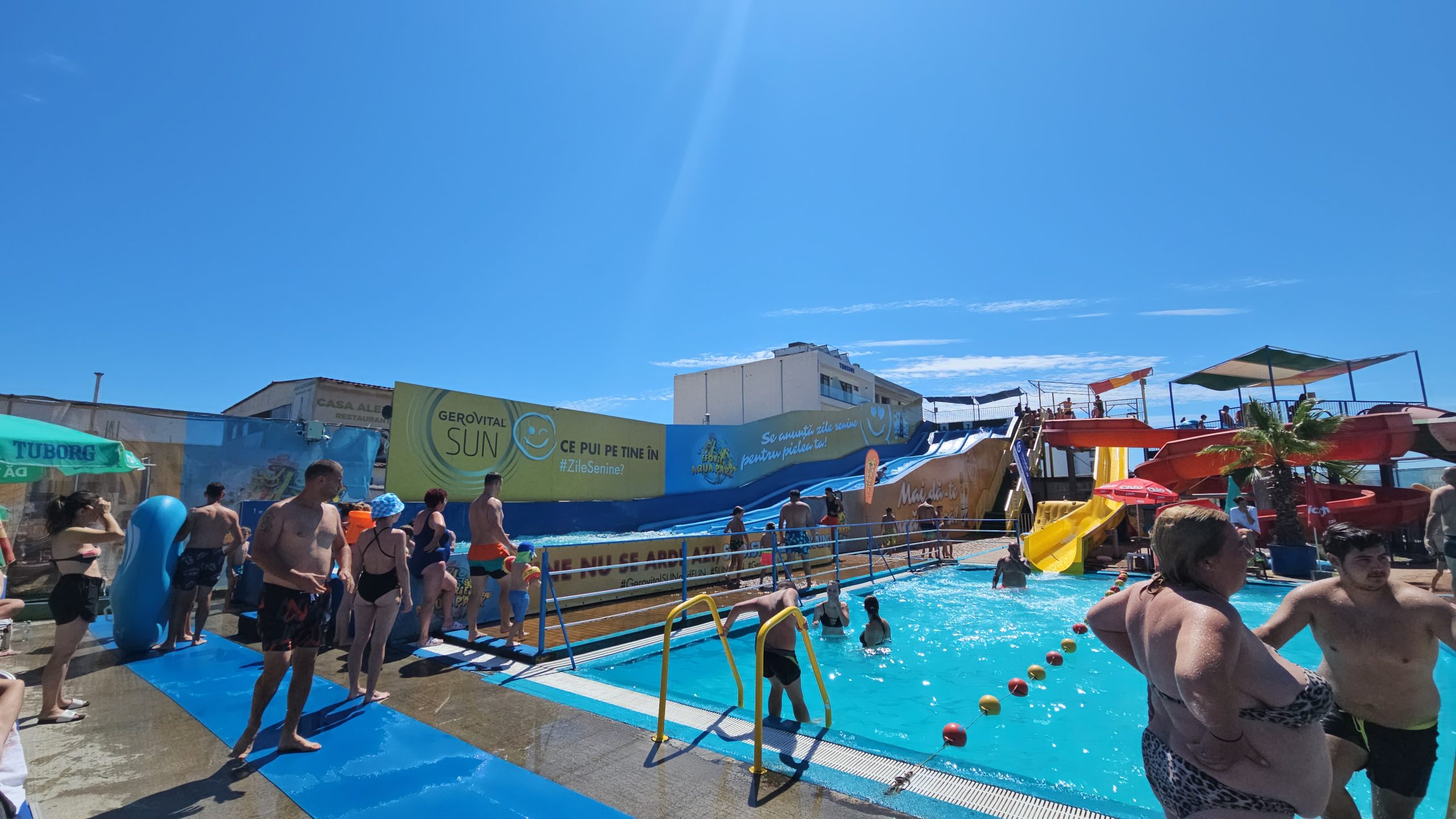 „În luna august, parcă vine din ce în ce mai multă lume, parcul este plin. Avem multe momente artistice, atât pentru cei mici, cât și pentru cei mari, îi ținem în priză toată ziua. Avem activități cu copiii, cu părinții, aqua zumba, avem traseul gonflabil din piscină, unde organizăm chiar și concursuri cu cei mari. Vremea este frumoasă, iar atmosfera este super și vă așteptăm în continuare aici. Parcul  este deschis și în luna septembrie, noi spunem că până la începutul anului școlar. Avem noutăți, mascote, personaje precum Huggy Wuggy, Donald Duck, Popeye Marinarul, precum și alte personaje de poveste. Am schimbat și câteva concursuri și am adus altele noi pentru cei prezenți în parcul acvatic, trucuri de magie și iluzionism realizate de magicianul Ciprian“, a declarat Miruna Pîrvan.