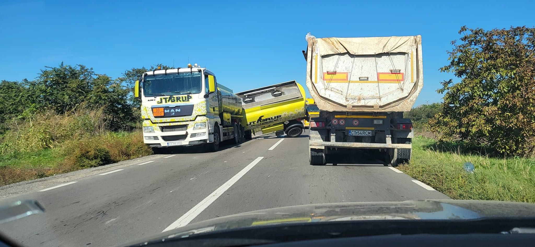UPDATE: Cisterna a fost repusă pe partea carosabilă.