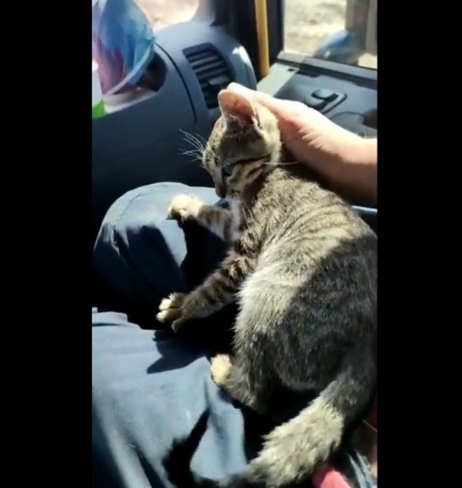 Pompierii au uscat-o cu un prosop și au hrănit-o. În semn de mulțumire pentru că au salvat-o, pisica a stat numai în brațele lor și le-a arătat afecțiunea ei. Mai mult ca sigur, puiul de pisică își va găsi stăpânul ei în unul dintre salvatori.