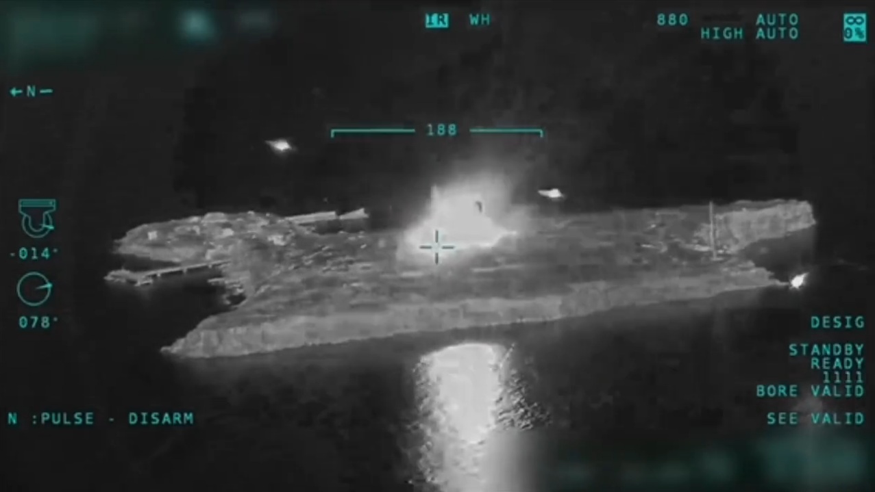 În clipul postat pe rețelele de socializare – filmat de o dronă Bayraktar TB2, ce supraveghea operațiunea – se vede cum două avioane vin la altitudine foarte mică, dinspre sud, lovesc și folosesc și contra-măsuri, pentru a deturna eventuale lovituri antiaeriene.