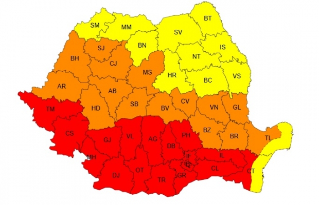 Administrația Națională de Meteorologie (ANM) a emis multiple avertizări de cod roșu, cod portocaliu și cod galben, valabile în intervalul 26 – 28 iulie a.c., în toată țara.